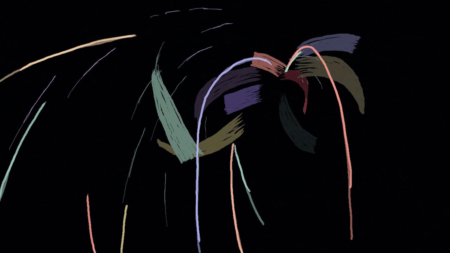 Animated abstract shapes and gestures dance together playfully with bird-like motion. The original music score was composed and performed by Gary Chang