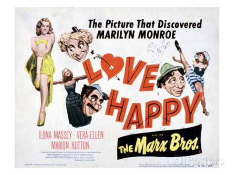 The final Marx Brothers movie was Love Happy (1949). At least it was the final movie for the three Marx Brothers to appear together. In 1957 they all appeared in separate segments of The Story of Mankind. Actually, for a good part of Love Happy, only Harpo and Chico appear. Groucho is nowhere to be seen, which really takes away from this movie.