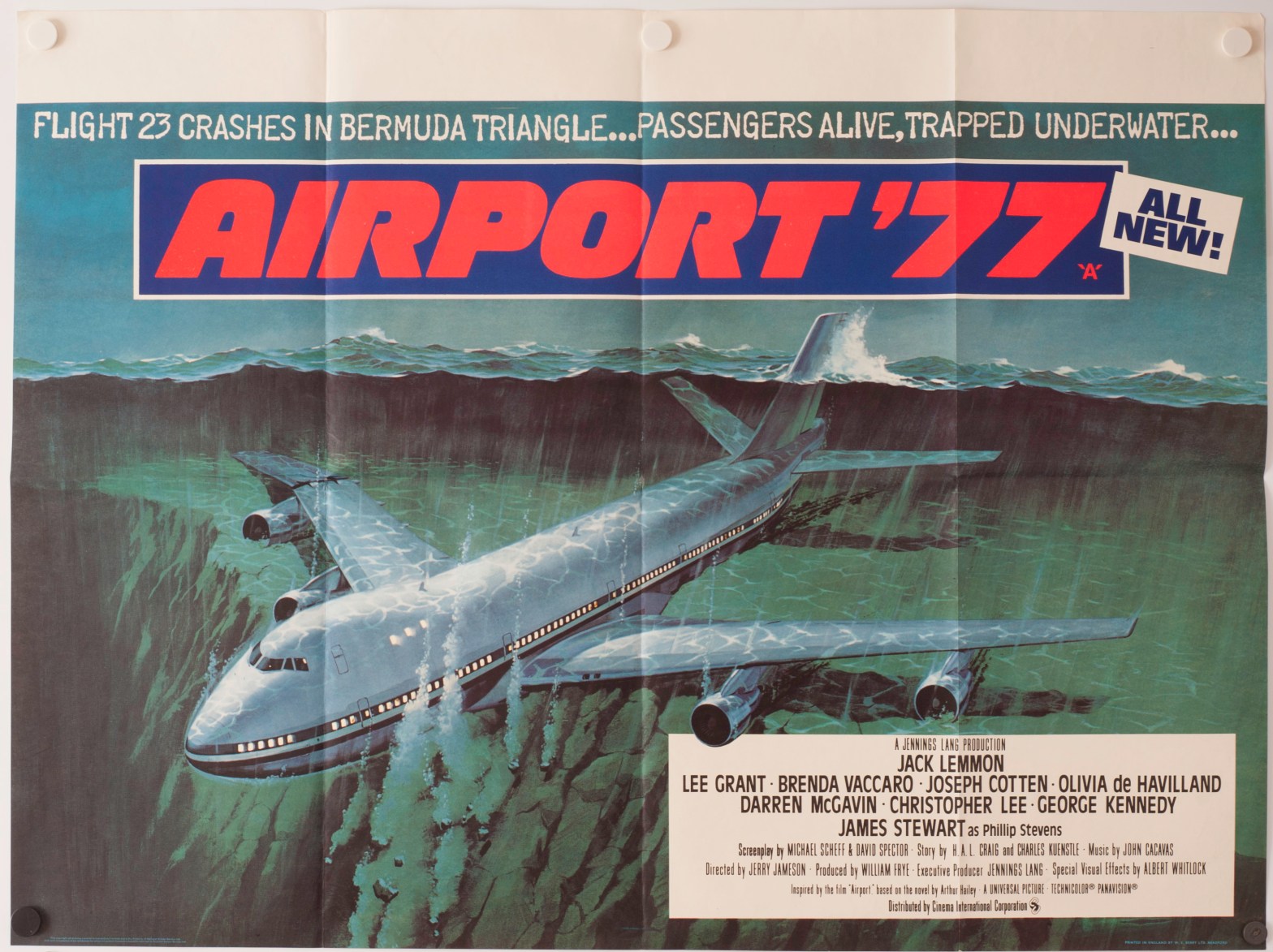 A luxury Jumbo Jet, kitted out as a swish, flying convention centre, sets off on it’s maiden voyage carrying a passenger list of the rich and redoubtable and owner Stewart’s priceless artwork collection. Some of the crew are bent on carrying off this loot for themselves so they takeover the plane and fly it into the bermuda triangle to avoid detection. Hitting an off-shore oil rig, they plunge into the sea, ditching the air-liner on the sea-bed. Harrassed captain Lemmon has to try and save everyone as the air runs out and the water starts seeping in.