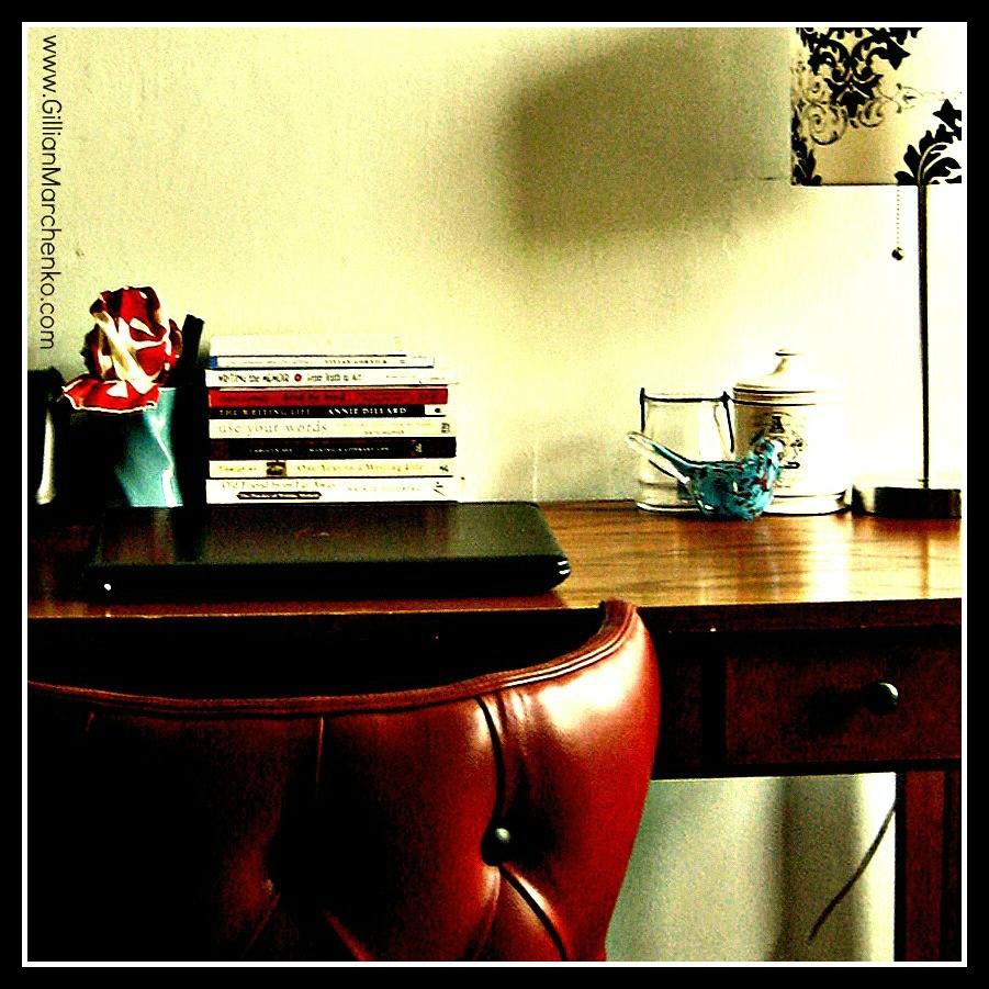 My writing nook at home. Don’t be fooled, it looks Pier One, but really, it’s a hodgepodge of thrift store and Craigslist.