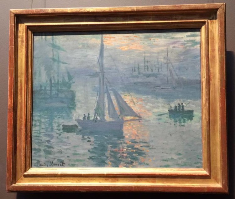 Our guide of the “Era of Impressionism” chose two of Claude Monet’s paintings for this tour. One was Sunrise (Marine) that Monet portrayed the industrial port of Le Havre of France.