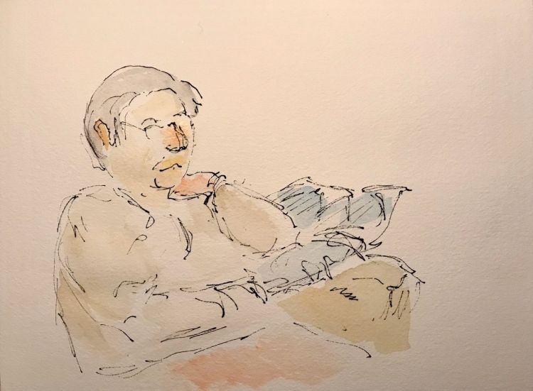 I am happy to have been able to combine my ink sketching with my watercolor painting. I am working with a 12×9″ block of watercolor paper, so it is easy to prepare ink drawings at home during quarantine. This was difficult during the days of working.