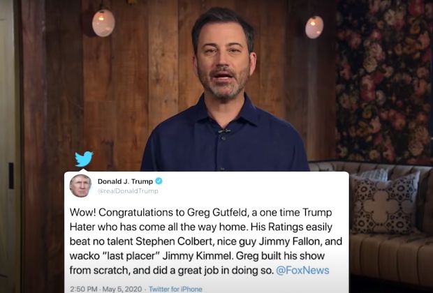 Jimmy Kimmel on Tuesday called out President Donald Trump for rage-tweeting about late-night comedians when he should be focused on combating the coronavirus pandemic. Earlier that afternoon, Trump tweeted his congratulations to Fox News’ Greg Gutfeld, “a onetime Trump Hater” who has changed his tune and found ratings success at the conservative cable network. In…