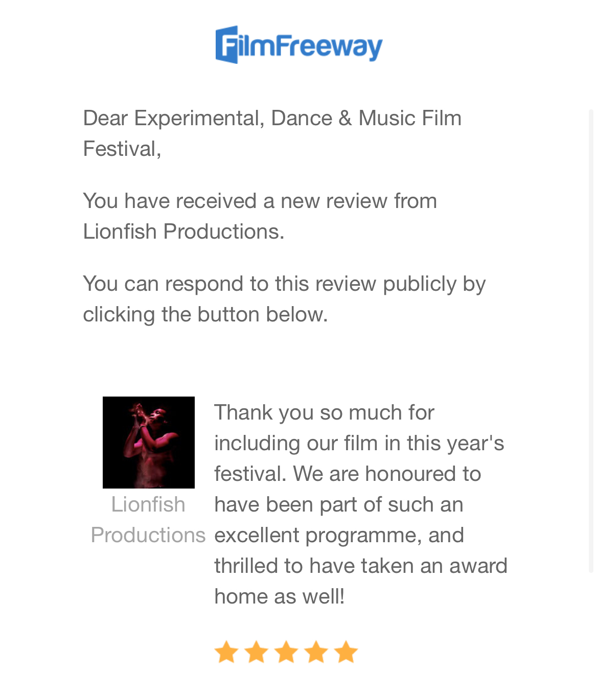 Thank you so much for including our film in this year’s festival. We are honoured to have been part of such an excellent programme, and thrilled to have taken an award home as well!