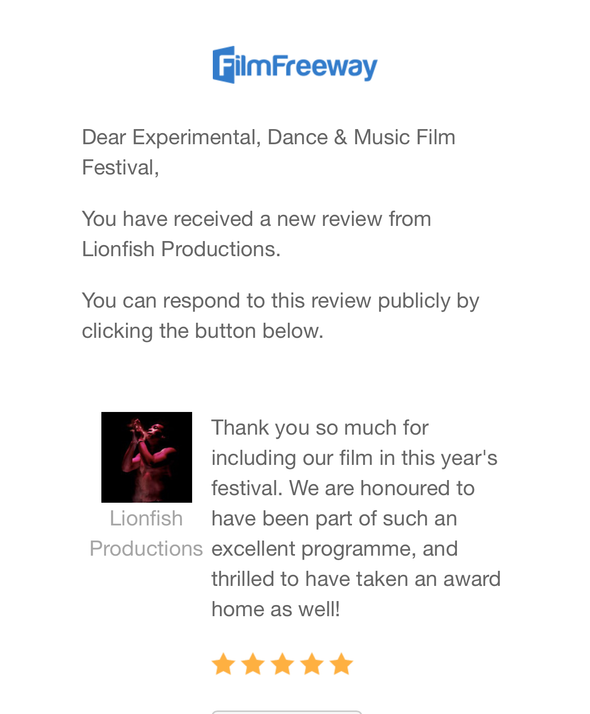 Thank you so much for including our film in this year’s festival. We are honoured to have been part of such an excellent programme, and thrilled to have taken an award home as well!