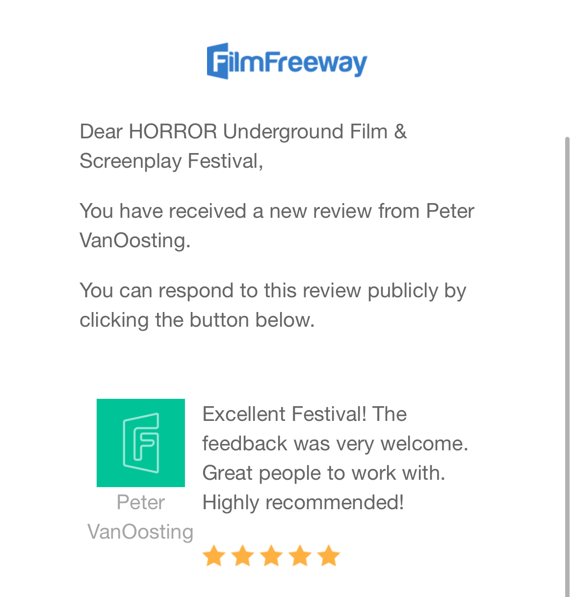 Today’s FilmFreeway Testimonial: HORROR Underground Film Festival