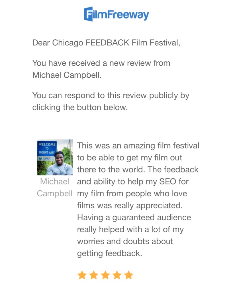 This was an amazing film festival to be able to get my film out there to the world. The feedback and ability to help my SEO for my film from people who love films was really appreciated. Having a guaranteed audience really helped with a lot of my worries and doubts about getting feedback.
