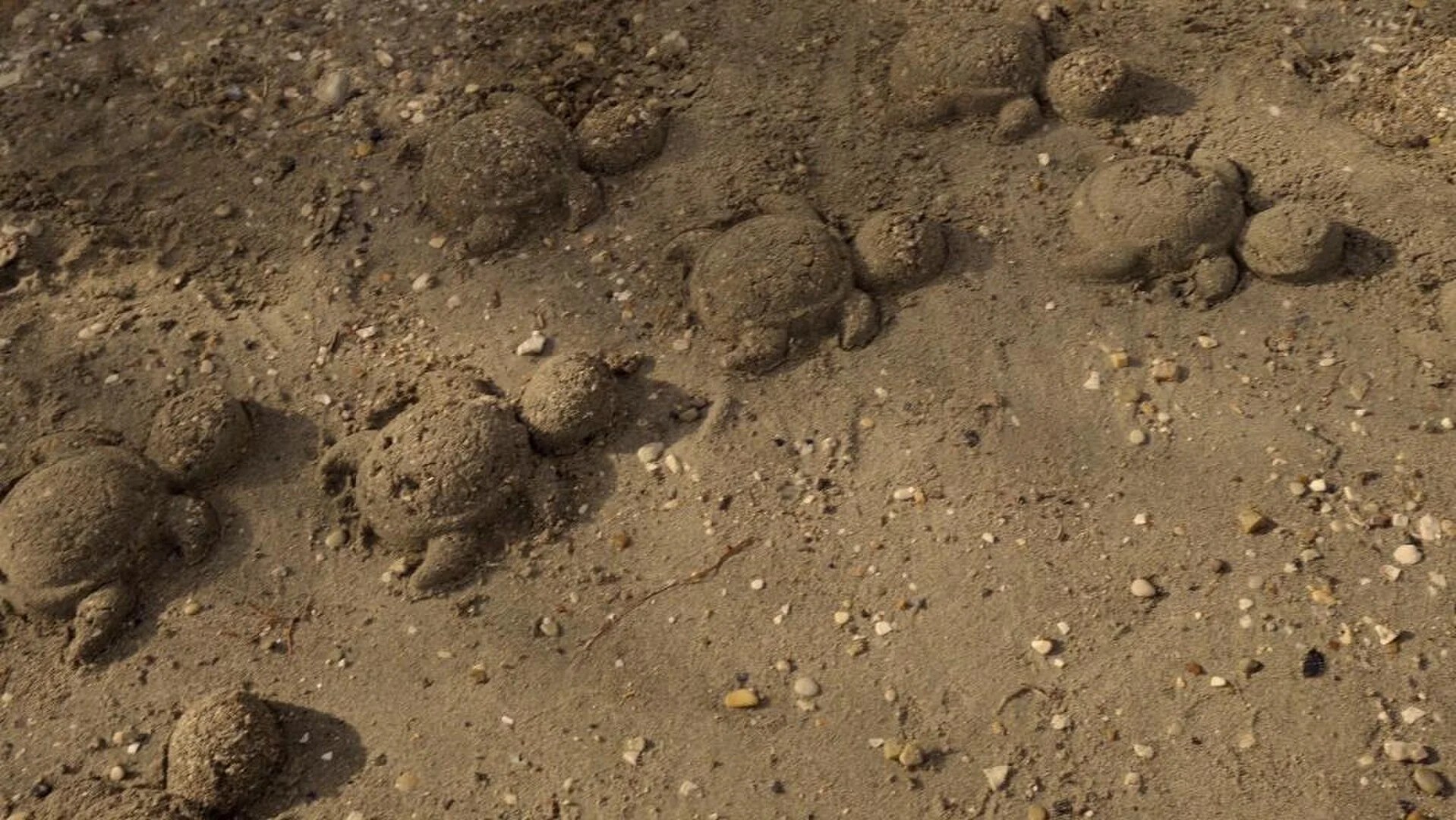 A little girl tries her best to protect her beloved sand sea turtles from the busy summer beach.