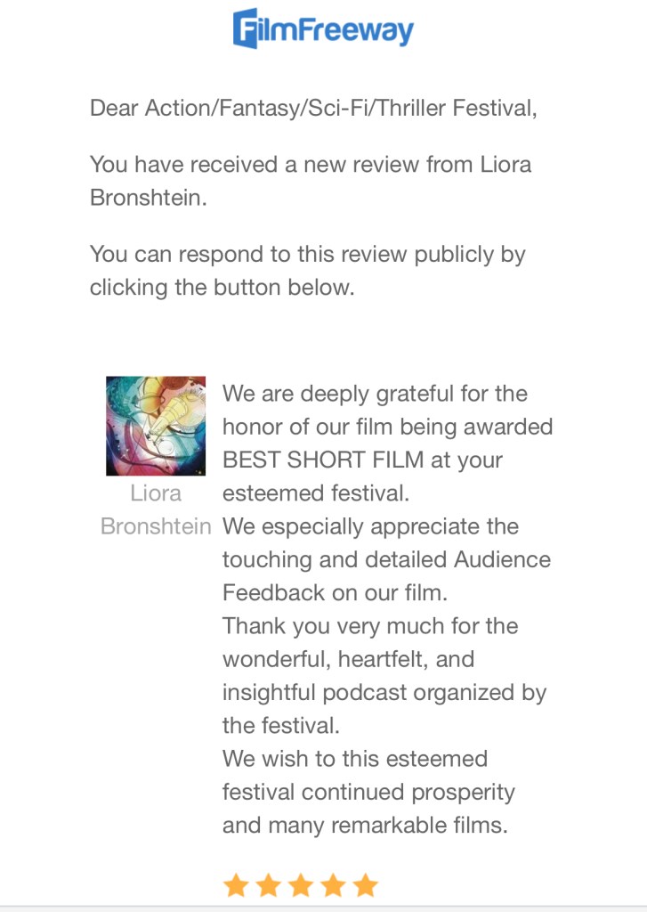 We are deeply grateful for the honor of our film being awarded BEST SHORT FILM at your esteemed festival.