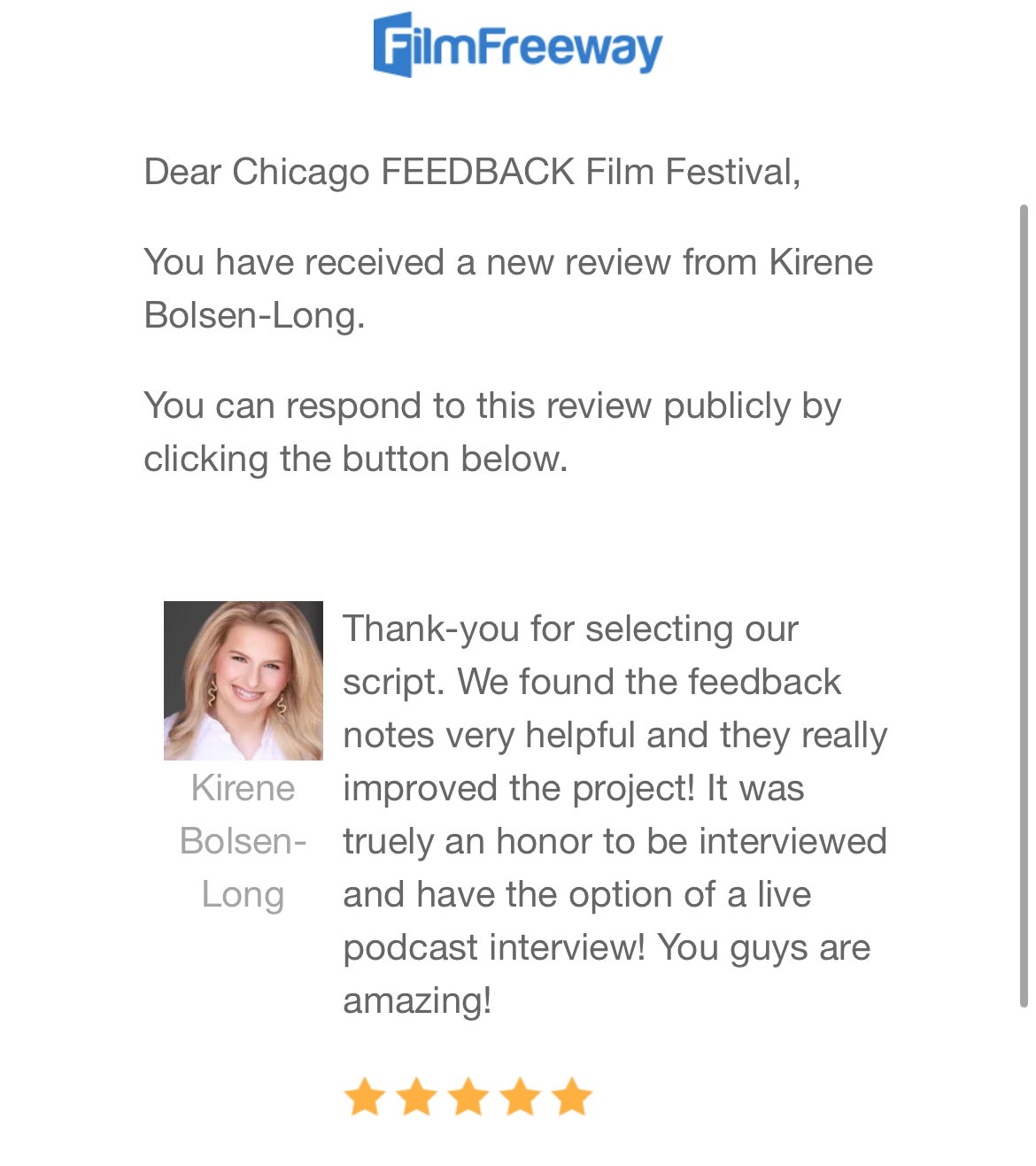Thank-you for selecting our script. We found the feedback notes very helpful and they really improved the project! It was truely an honor to be interviewed and have the option of a live podcast interview! You guys are amazing!