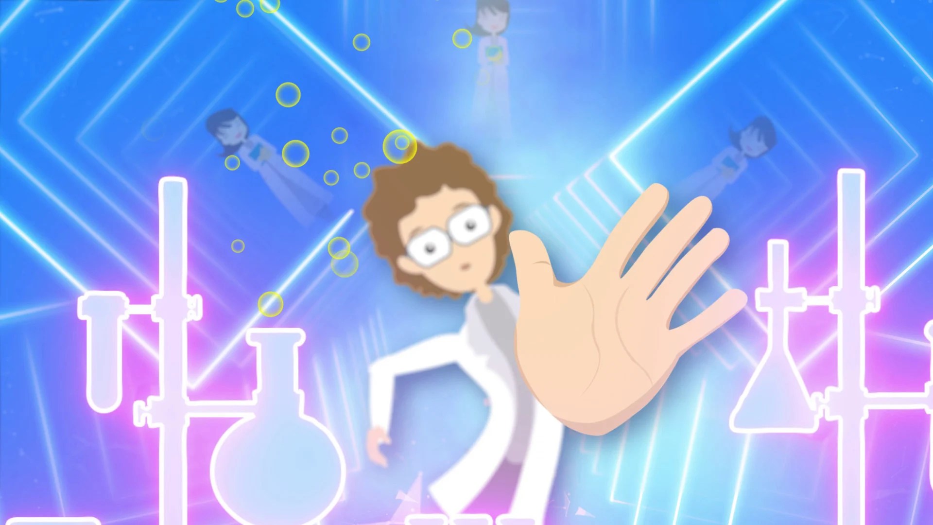 A brilliant boy scientist meets the girl scientist of his dreams, poised and beautiful, surrounded by flasks and beakers. The best he can do is bottle her image in his flask, so he may serenade and waltz with her in his Quantum Physics Lab.