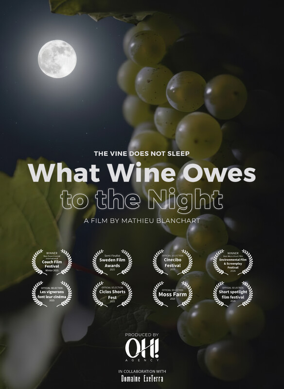 In the silent darkness, the vines whisper, the leaves quiver, and the earth still breathes. What the Wine Owes the Night is a visual and sensory poem, an intimate dive into the nocturnal life of a vineyard. With little or no dialogue, the film captures breaths, fleeting lights, and unseen presences that watch over the land as humans withdraw.