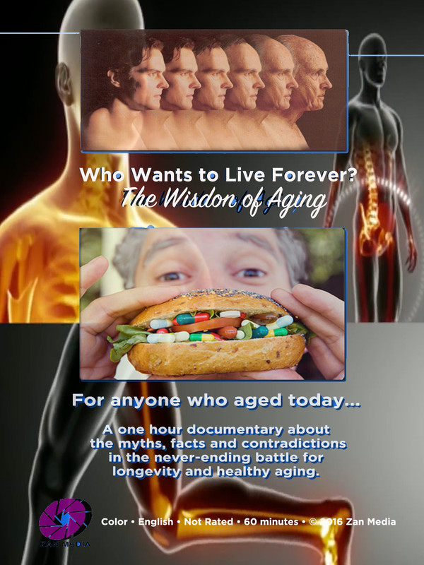 Who Wants to Live Forever, the Wisdom of Aging is a one hour documentary film about the myths, facts and contradictions in the never-ending battle for both longevity and healthy aging, produced by Zan Media. The filmmakers behind this movie offer no conclusions but suggest each viewer examine the information and decide for themselves whether living longer is a good thing or a bad thing. Is real progress being made in the field of healthy aging? Are folks being taken advantage of in the quest to remain young – and how? Who are the charlatans? Is aging actually a disease or a natural, degenerative process? How much longer would you actually live if the diseases associated with aging are cured? What is the real role of diet and exercise in aging? What is the difference between lifespan and healthspan?